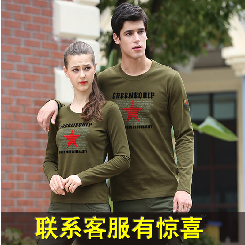 迷彩服男套装女士情侣装军版水兵舞服军训服长袖T恤军绿休闲装秋