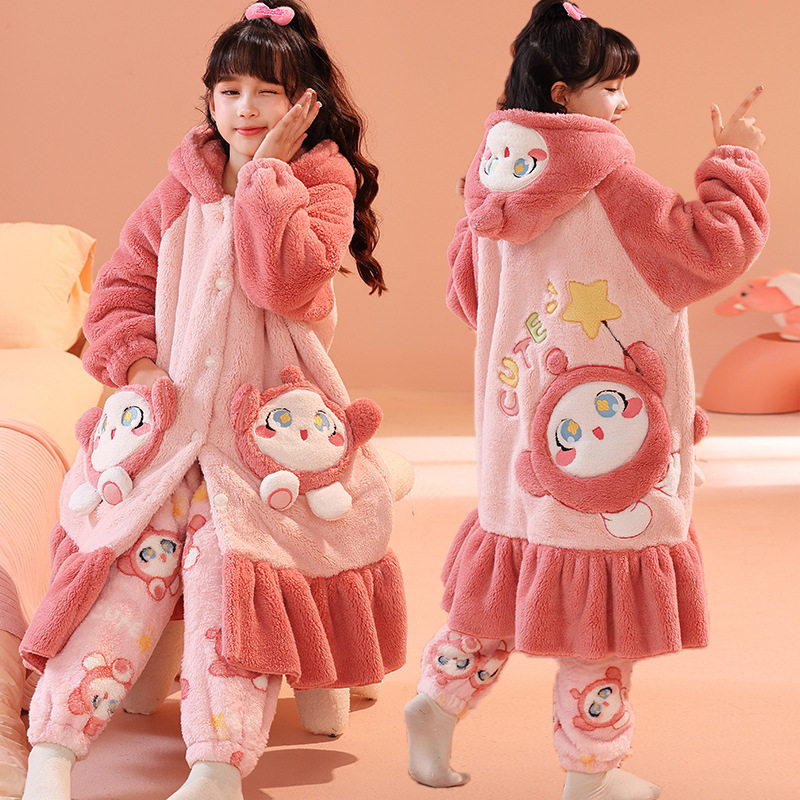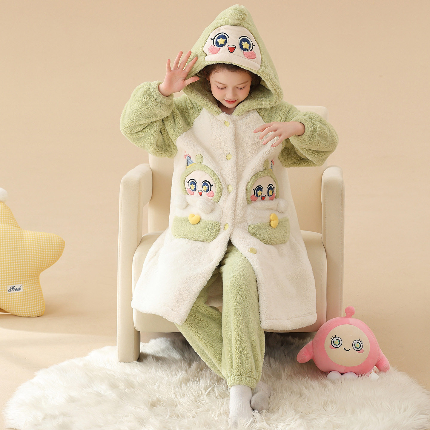 蛋仔派对儿童睡衣睡裤冬加绒加厚8-9-10周岁3女孩4女童5睡袍浴袍6