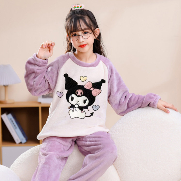 kuromi儿童睡衣套装秋冬季短毛绒4女孩6女童8库洛米3-5-7-9周岁10