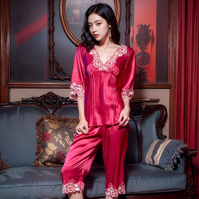 19姆米红色真丝睡衣两件套装桑蚕丝家居服可外穿本命年结婚礼物