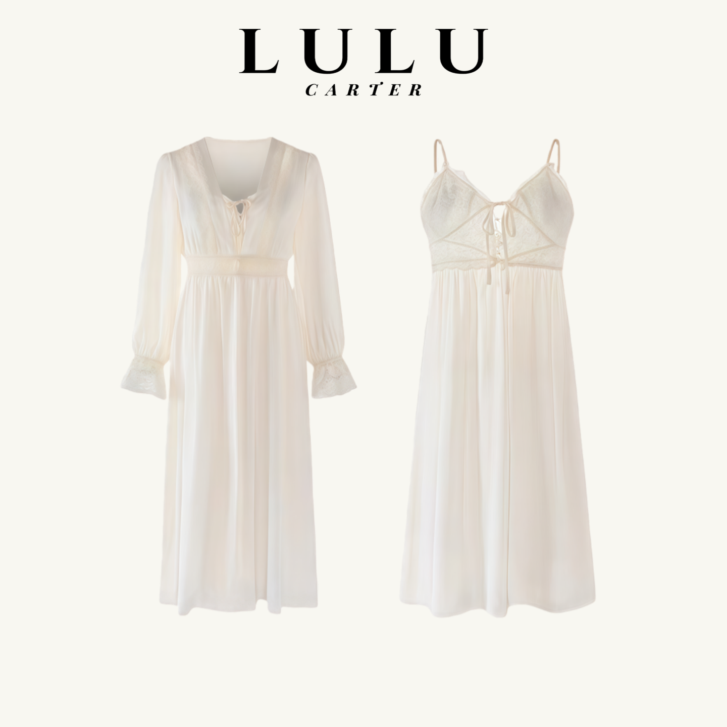 女性感桑蚕丝睡裙女春秋款法式真丝睡衣两件套吊带晨袍新娘家居服