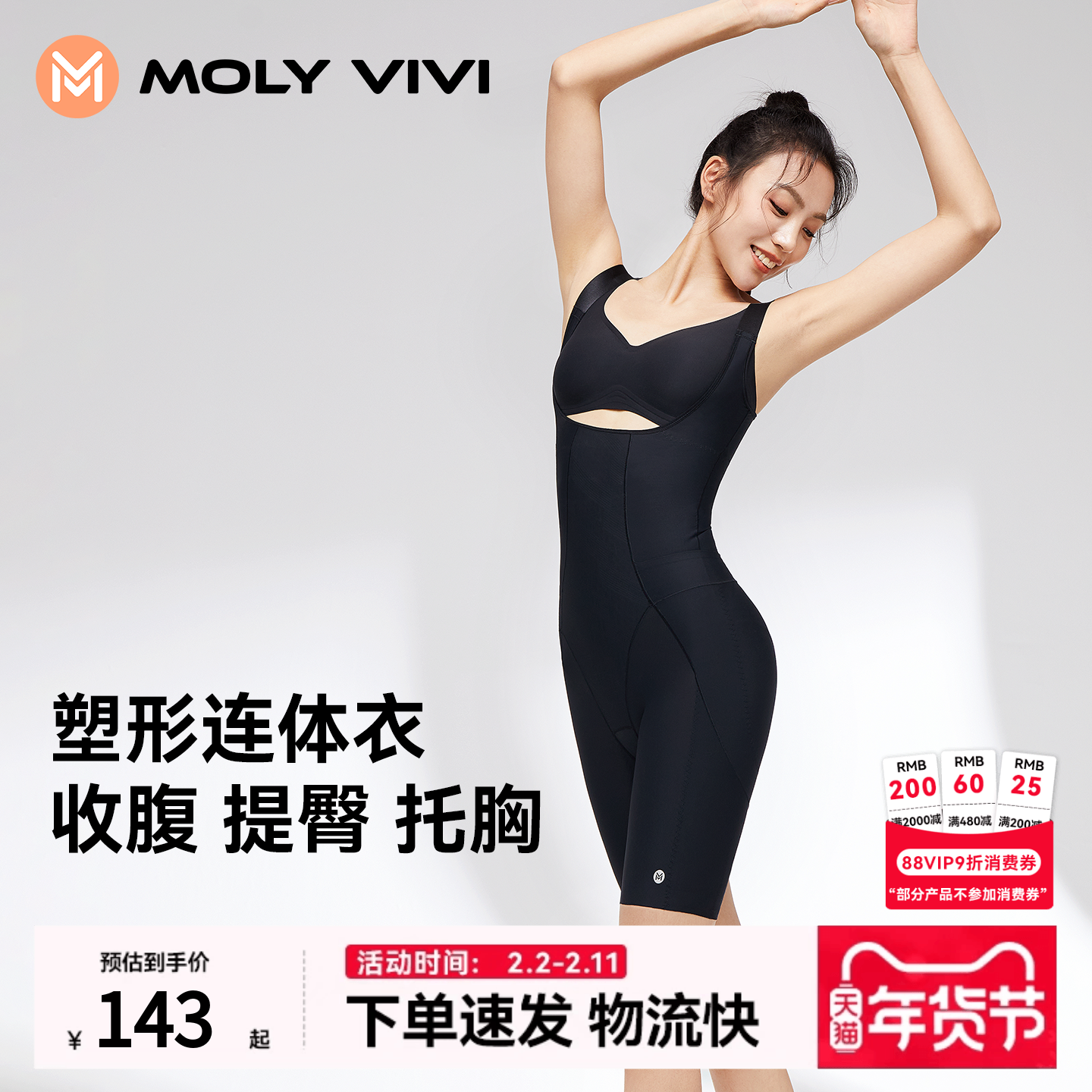 魔力薇薇塑形连体衣收副乳胸托提臀紧身连体裤产后收腹束腰塑身衣