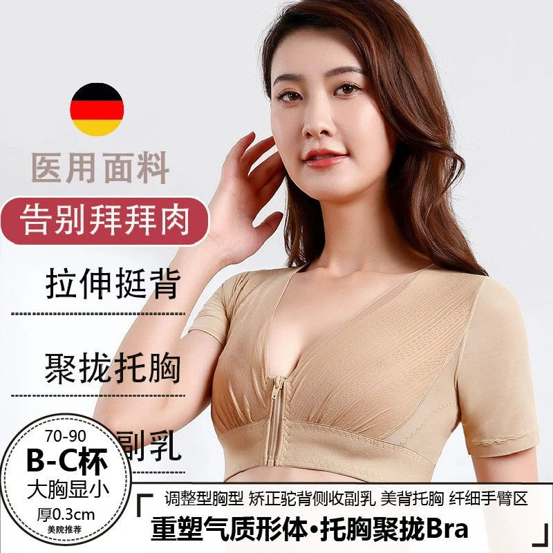 医美面料矫正中袖聚拢束身衣塑形收副乳胸托美背减拜拜肉防下垂薄