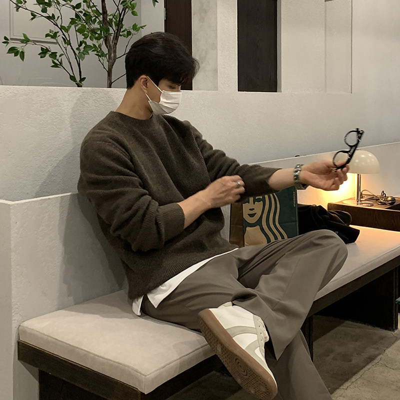 碧舍男士上衣韩版潮流纯色套头毛衣时尚短款圆领针织衫宽松简约男