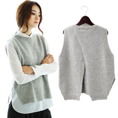 【清仓】韩版休闲针织马甲背心后开叉坎肩薄学院圆领短款套头外套