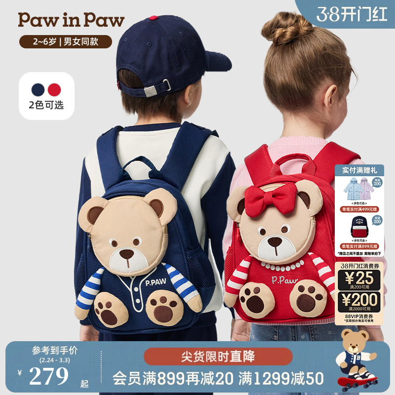 PawinPaw卡通小熊童装25年秋冬新款男女宝宝减负防泼水双肩包书包