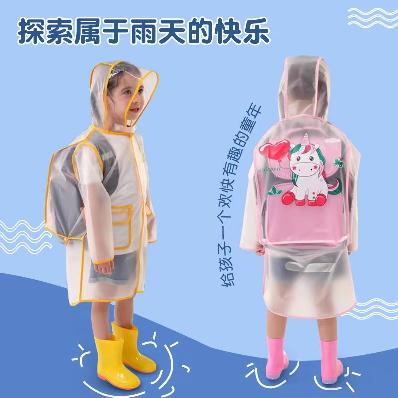 儿童雨衣小学生男女童幼儿园宝宝雨披小女孩带书包位卡通透明雨披