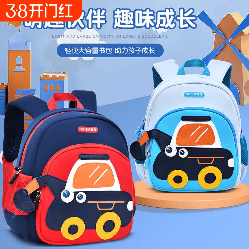幼儿园书包宝宝男孩双肩包1-3岁入学背包小汽车挖掘机儿童卡通