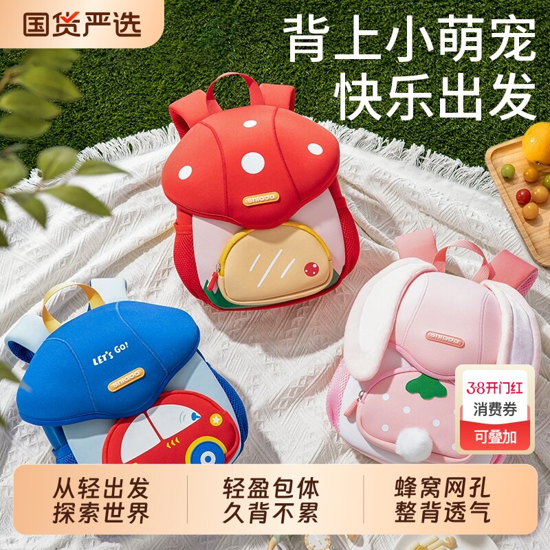 新款幼儿园女孩宝宝卡通书包轻便外出小兔狮子男童双肩防走失背包