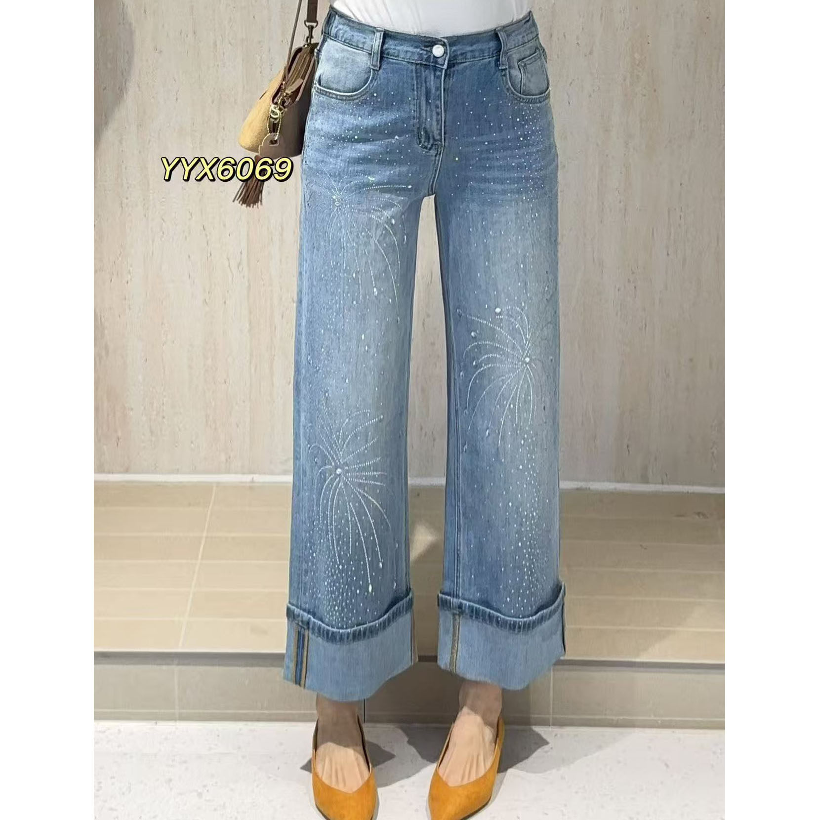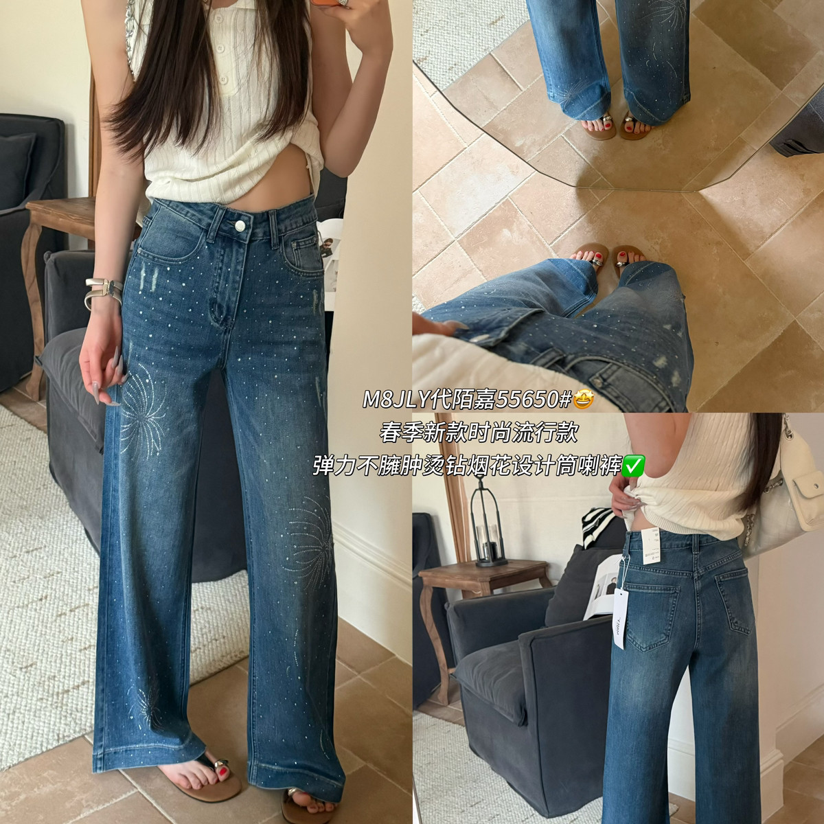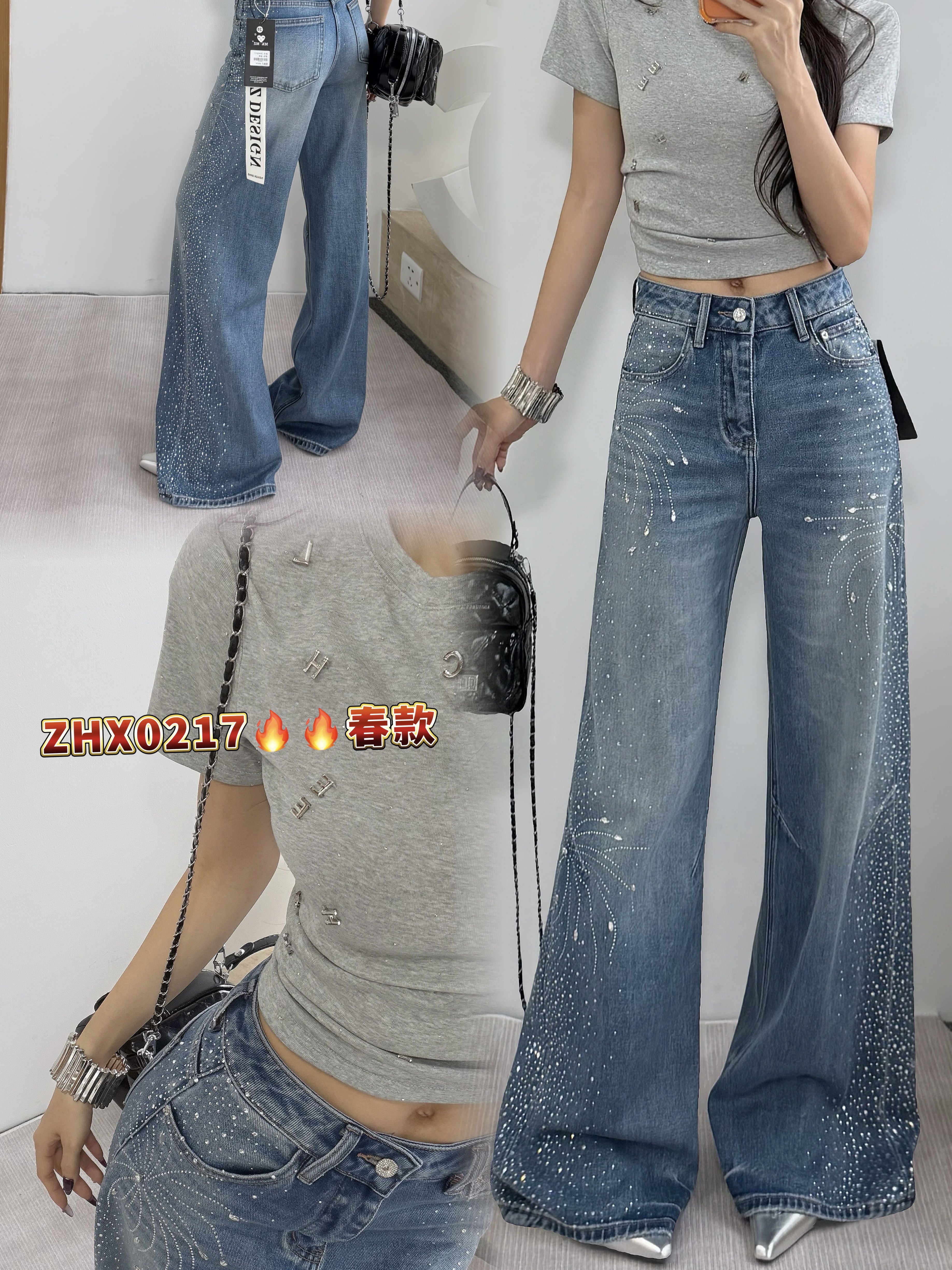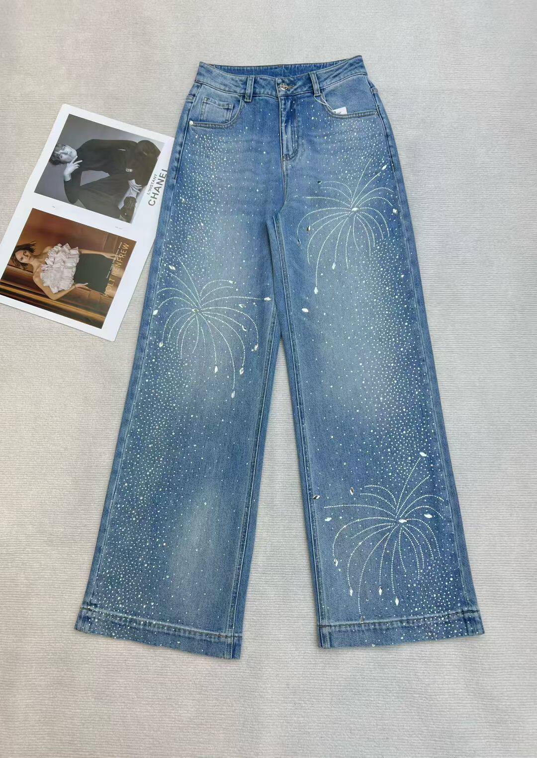 十三行欧货女装MK-MZ春季新款轻奢重工烟花烫钻百搭阔腿牛仔裤子