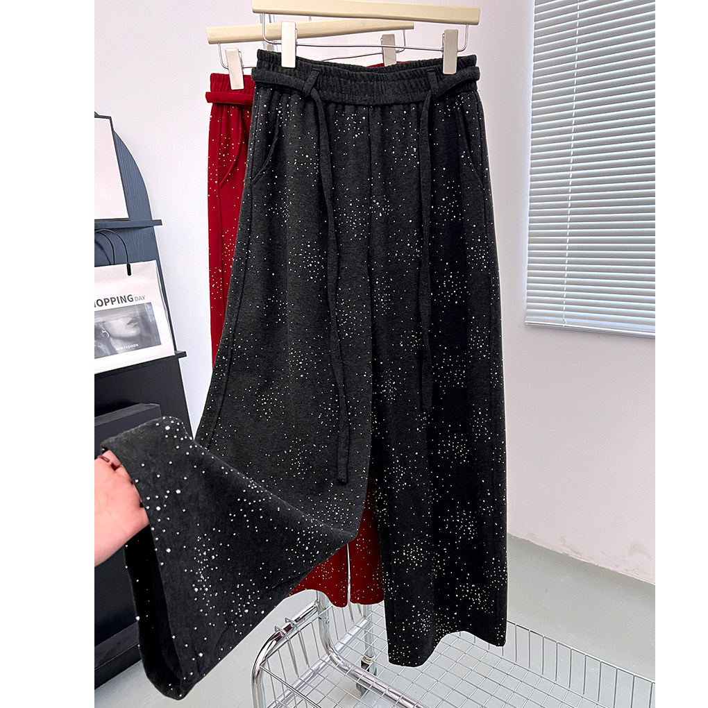 繁星烟花烫钻闪亮亮羊绒毛呢休闲裤女秋冬时尚设计感阔腿直筒长裤