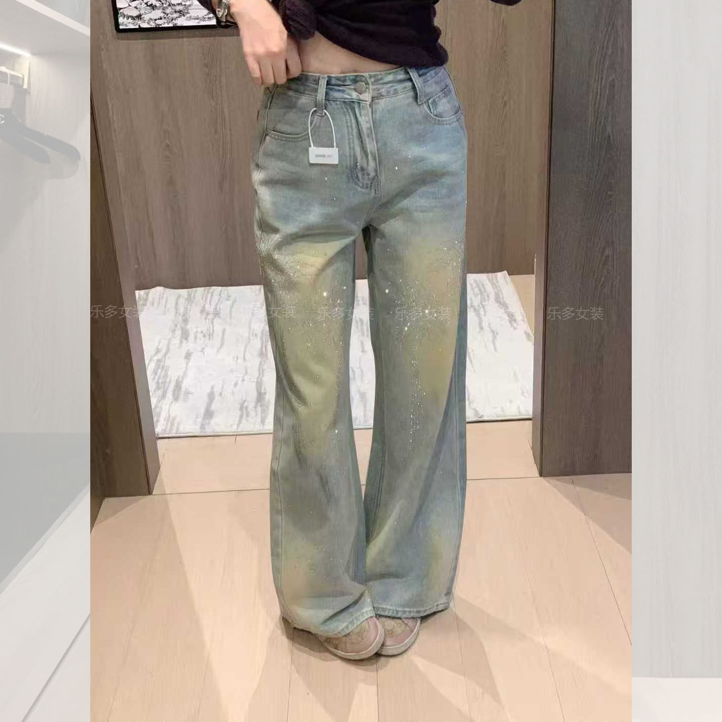 复古做旧烟花烫钻牛仔裤女2026新款春季小众设计感显瘦宽松直筒裤