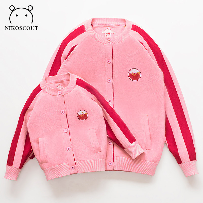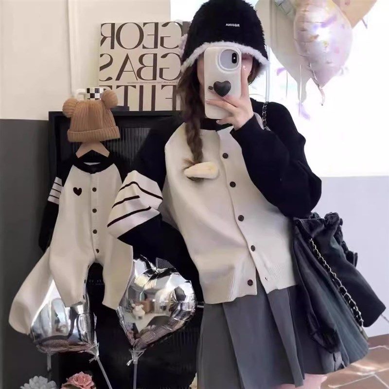 炸街亲子装2024新款秋冬一家三口洋气韩版母女母子装针织毛衣外套