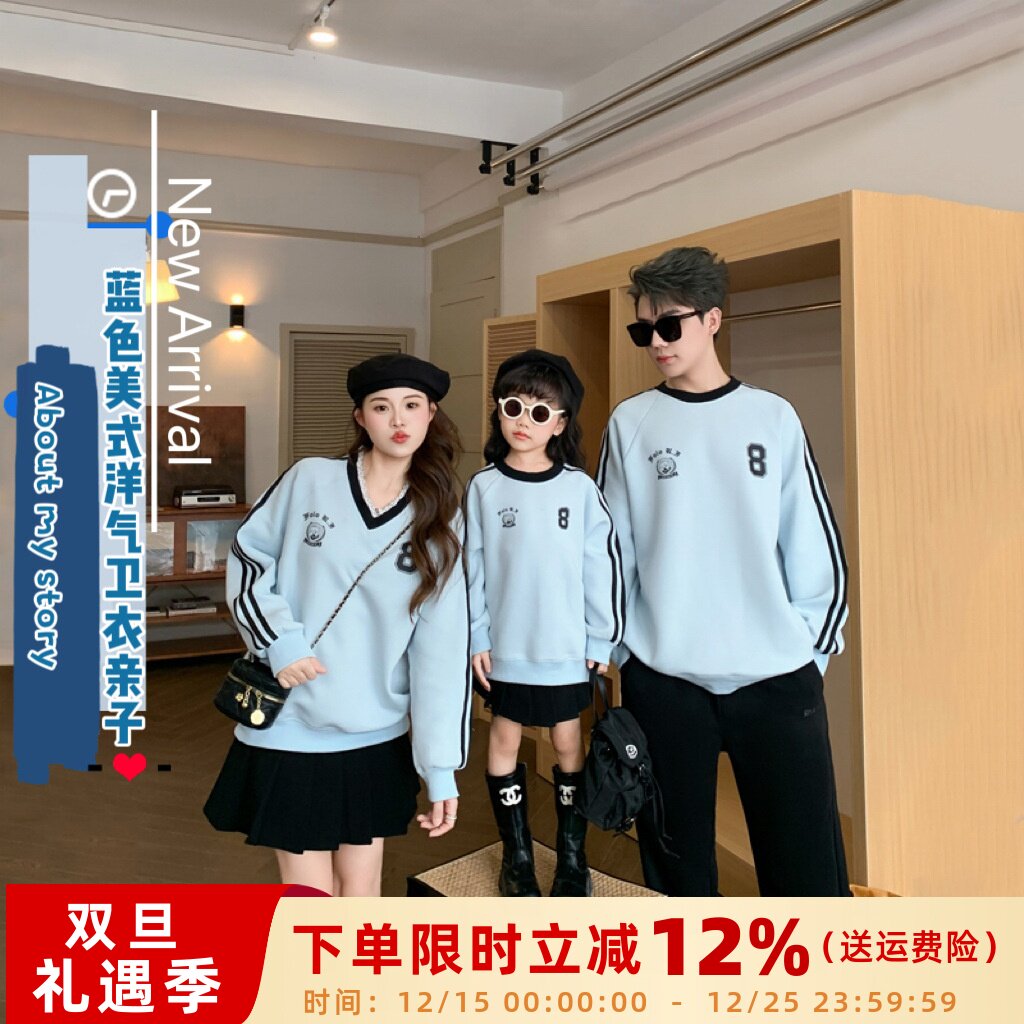 高级感亲子装韩版卫衣一家三口2025新款秋装炸街母女装全家福外套