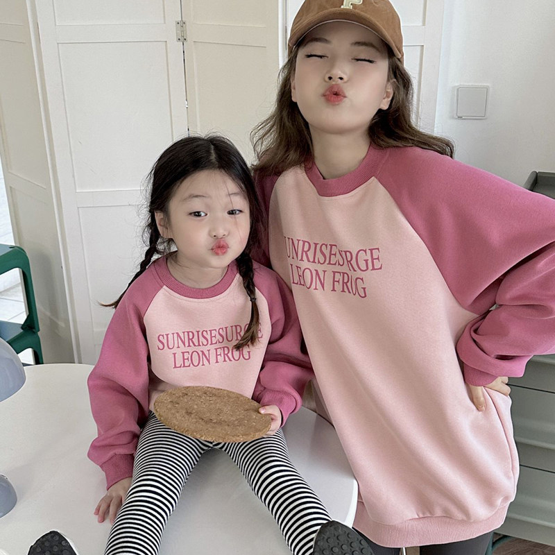 亲子装母女卫衣2025春秋新款韩版男女儿童字母时尚套头休闲潮上衣
