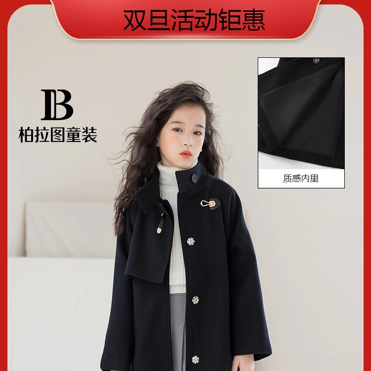 女童毛呢外套2025秋冬亲子装母女韩版开衫中长款大童女装呢子大衣