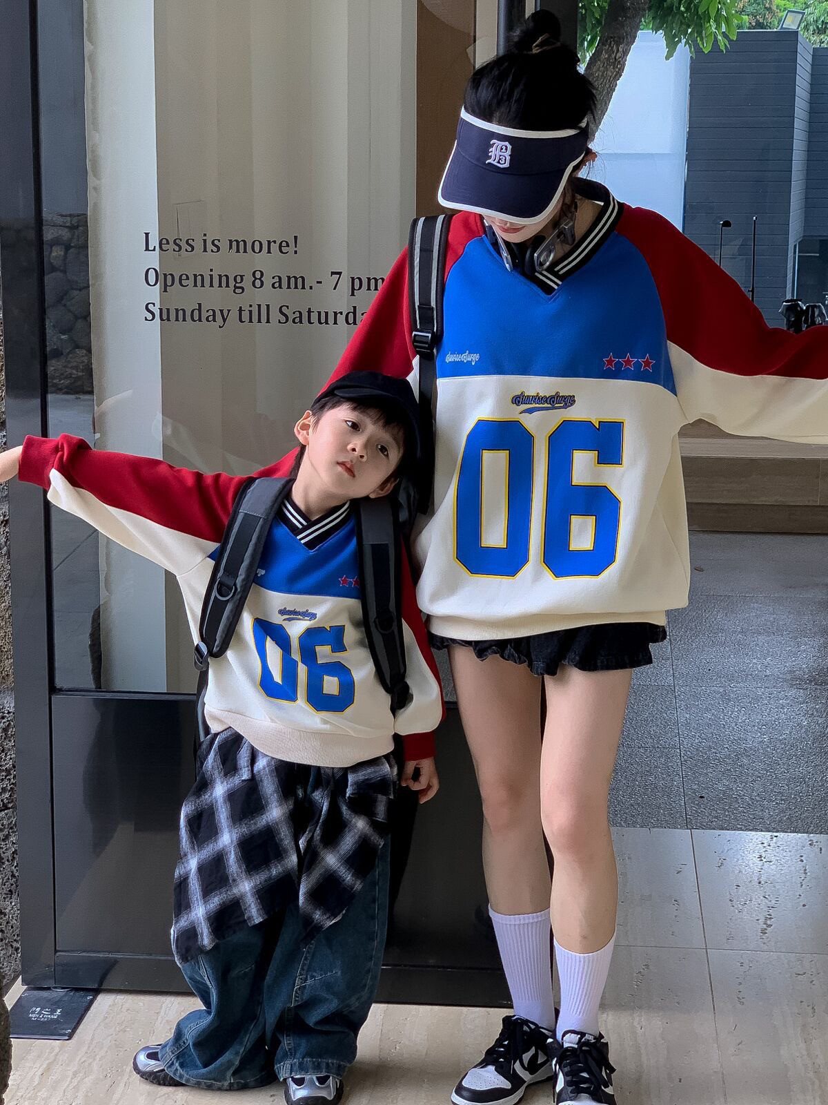 亲子装母女秋装卫衣2025新款韩版男女儿童撞色套头休闲洋气潮上衣