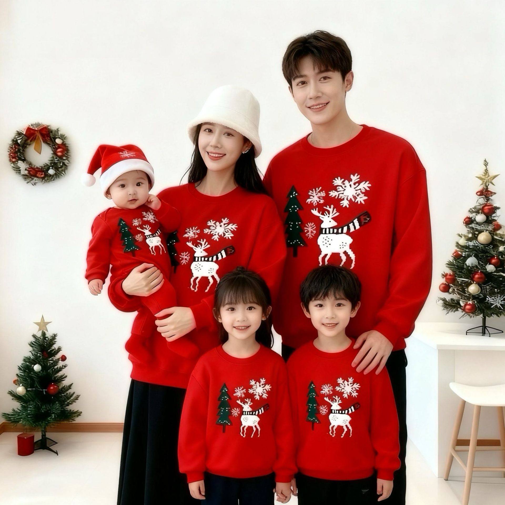 圣诞亲子装秋冬2025新款一家三口四口韩版百搭卫衣母女母子装爬服