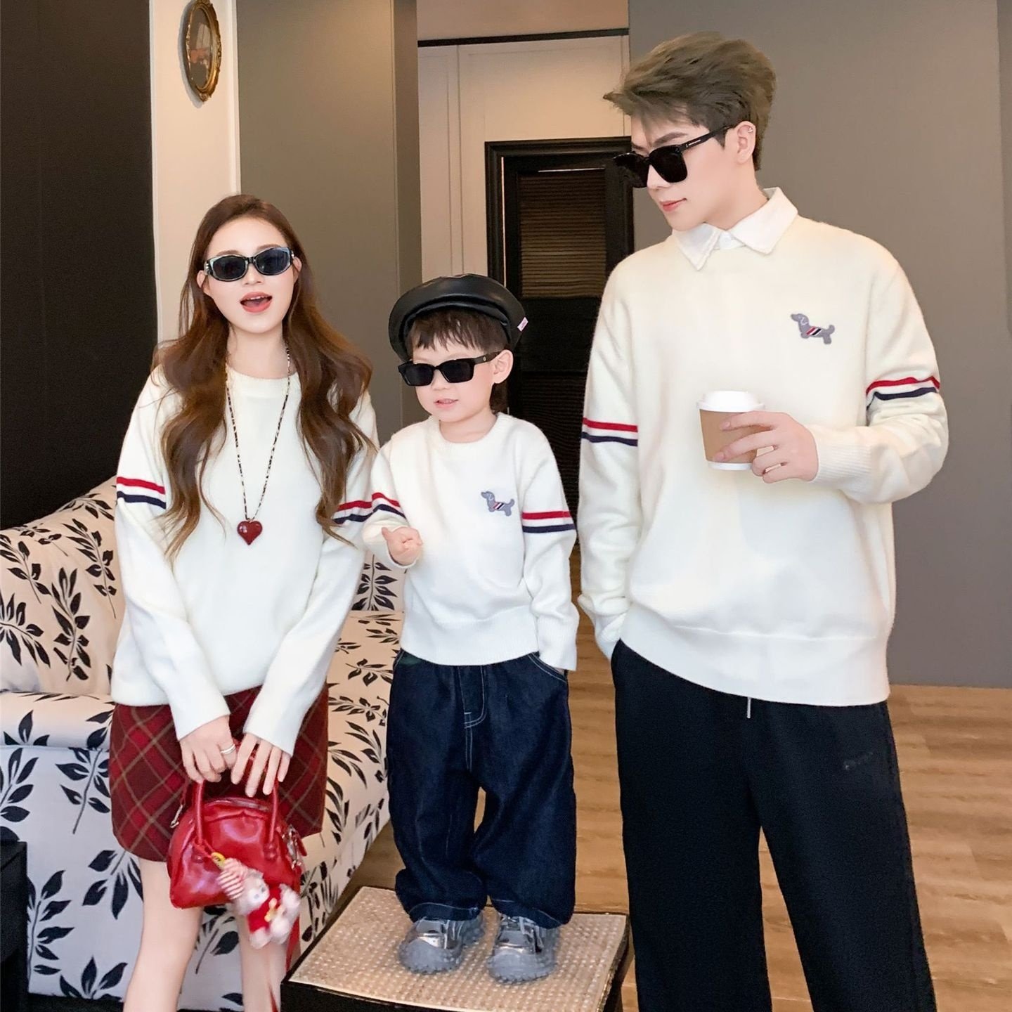 亲子装毛衣2026秋冬新款一家三口韩版复古针织衫套头母女母子装