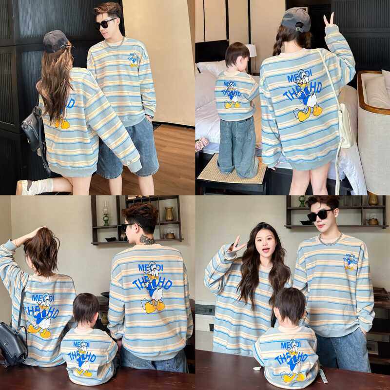韩版秋冬新款唐老鸭亲子装卫衣一家三四口母女卡通长袖婴儿爬服全
