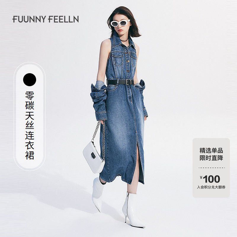 Miss Sixty2025秋季新款莱赛尔牛仔连衣裙女配腰带工装开衩长裙