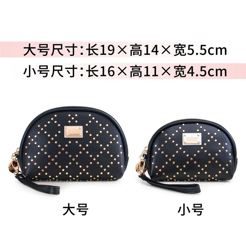 新款迷你化妆包袋小便携随身韩国铆钉小香风半圆贝壳型补妆手包女