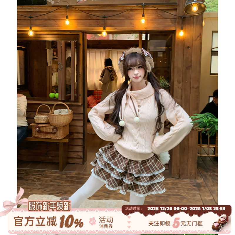 爱情魔鬼鱼 纯色羊驼蜜熊麻花毛衣女2025年冬季新款宽松百搭上衣