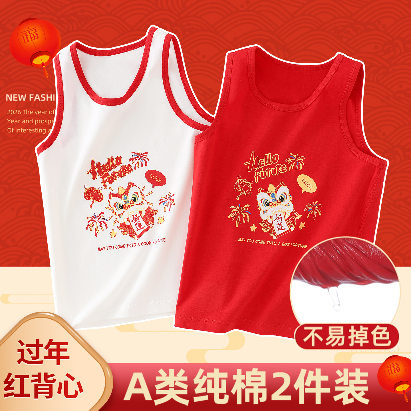儿童红背心大红色宝宝a类纯棉男童内穿本命年女童2026马年男孩男