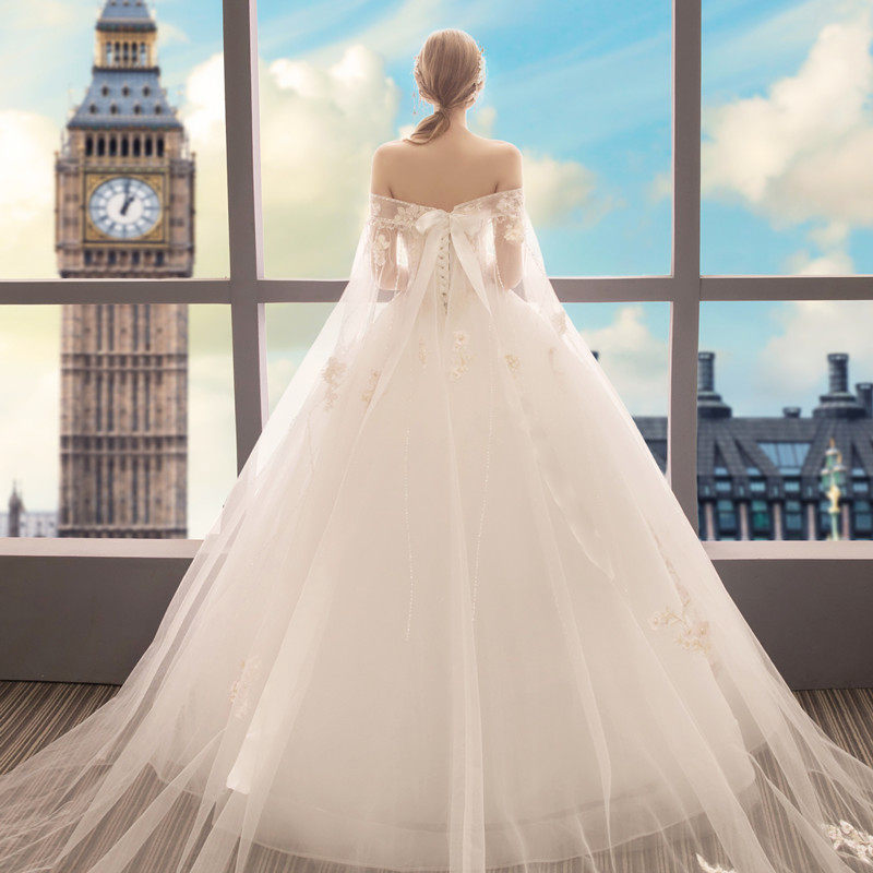 婚纱礼服2017新款新娘一字肩齐地拖尾韩式双肩修身显瘦冬季长袖