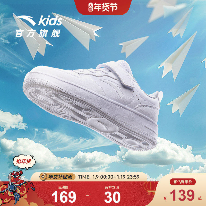 安踏儿童学生小白鞋低帮板鞋男女童春秋新款休闲运动鞋白色滑板鞋