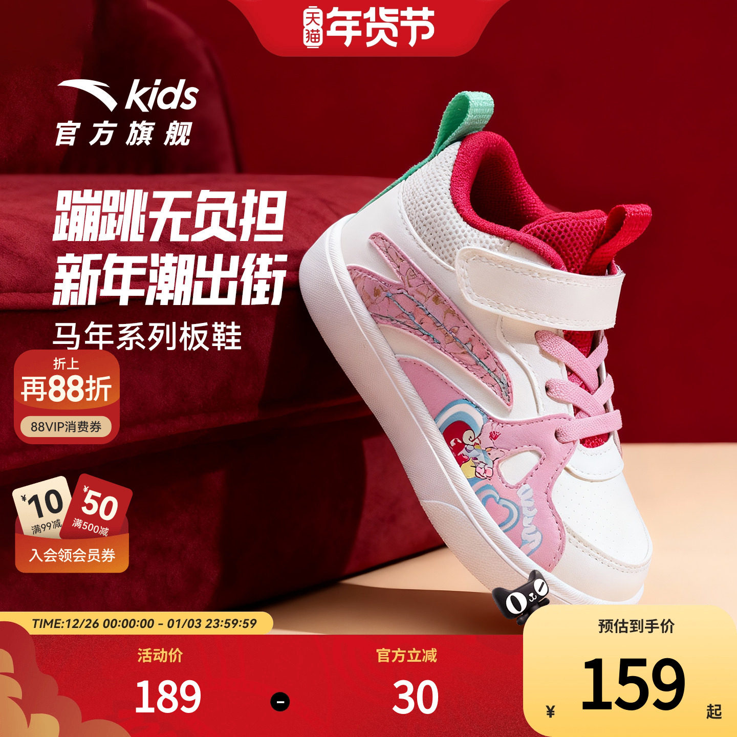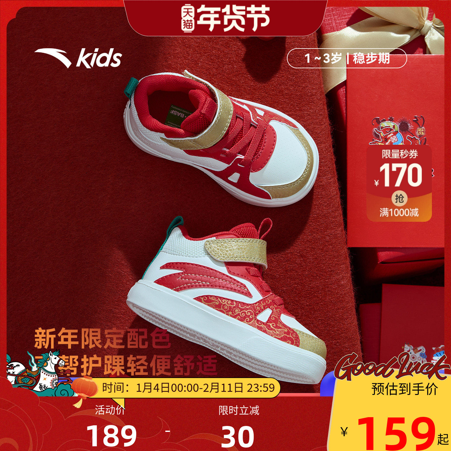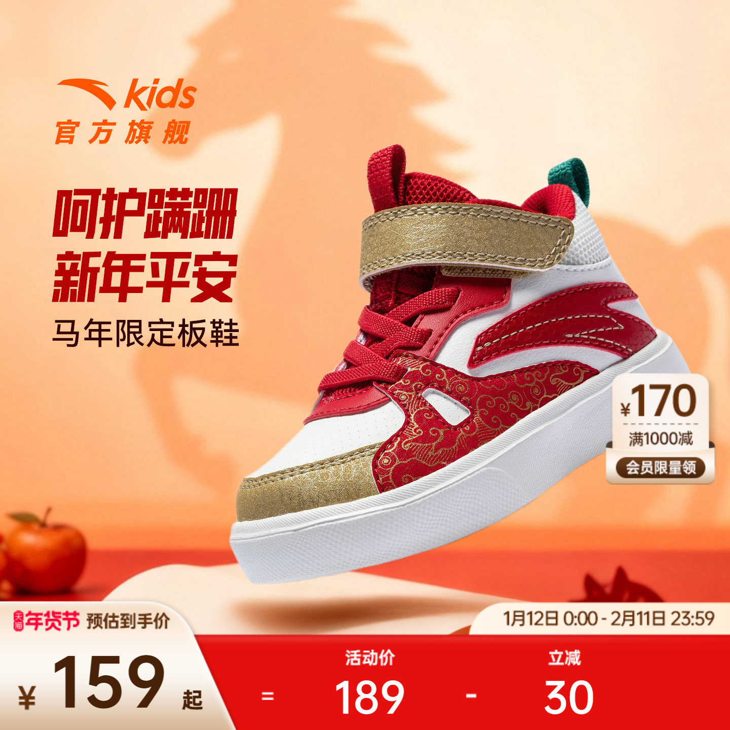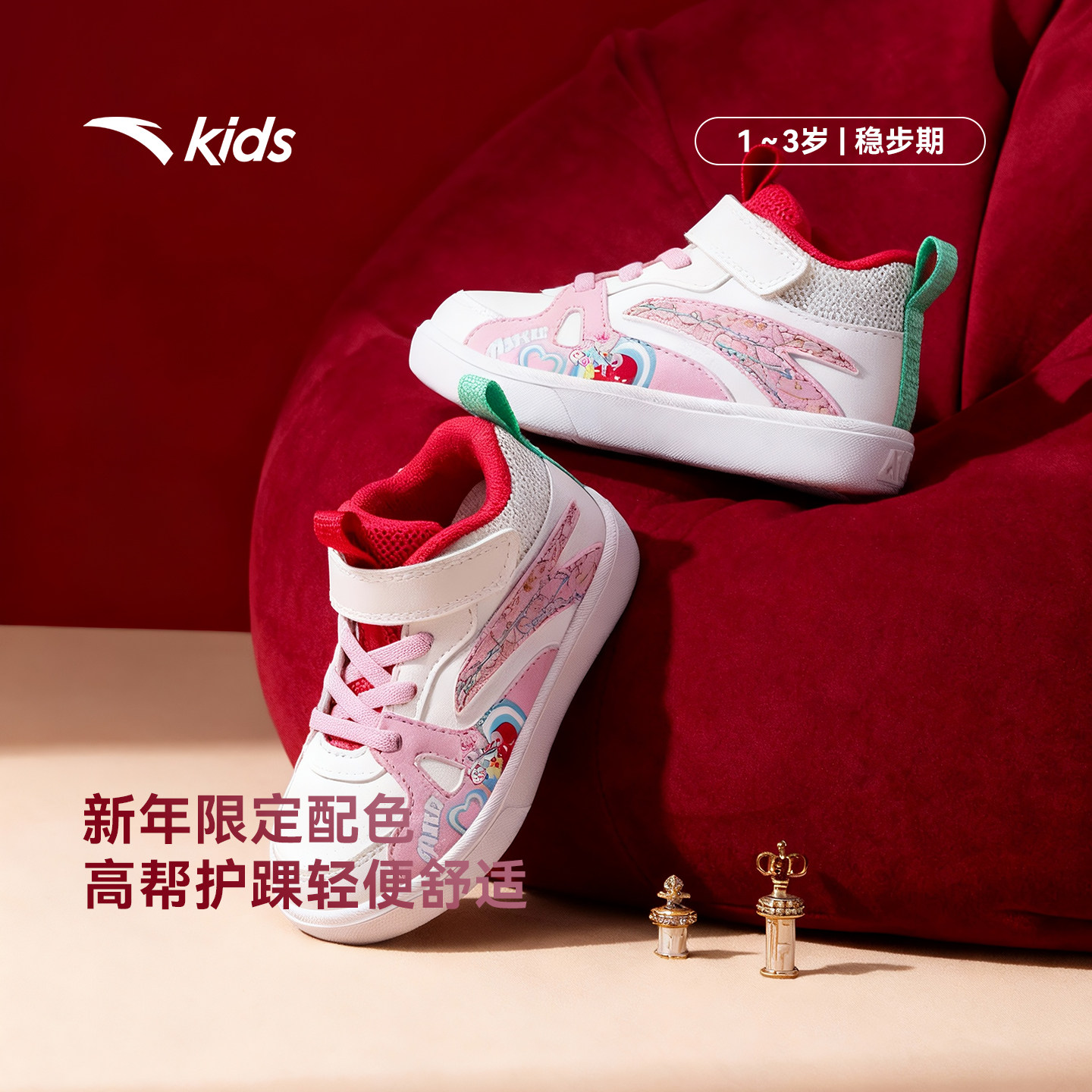 安踏学步鞋新年款男女宝宝幼儿园鞋高帮板鞋童鞋儿童运动鞋春秋款