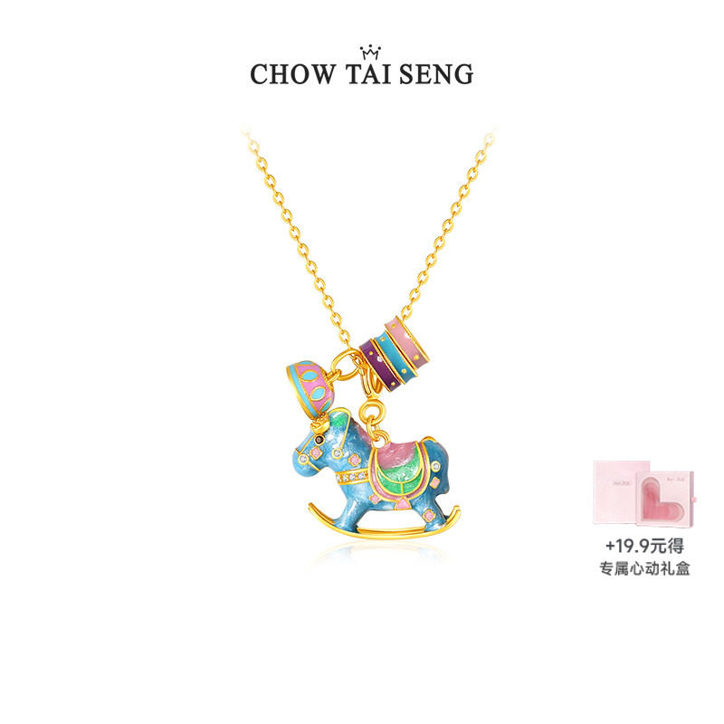 周大生彩色摇摇木马项链女款纯银S925生肖马珍珠锁骨链本命年礼物