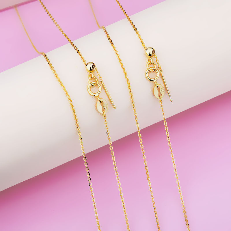 18k金色S925纯银项链女锁骨链裸链s999足银镀24k金色彩银链子黄色