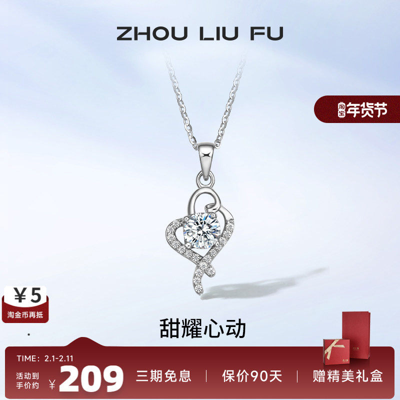 周六福S925纯银项链女锁骨链镶钻锆石项链女设计感韩版送女友