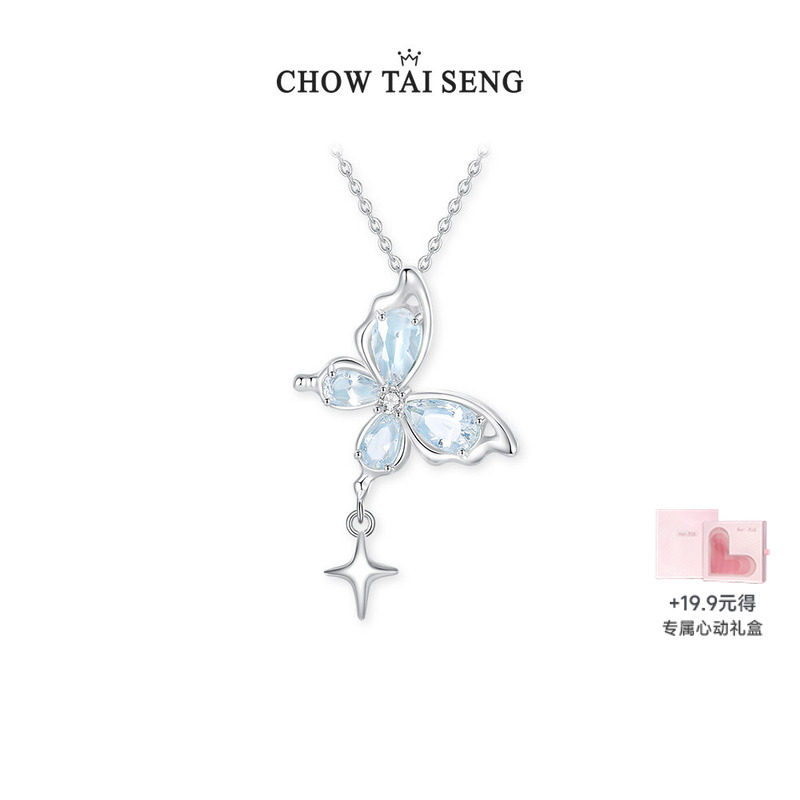 周大生蝴蝶项链女纯银S925轻奢高级珐琅锁骨链情人节礼物送女朋友