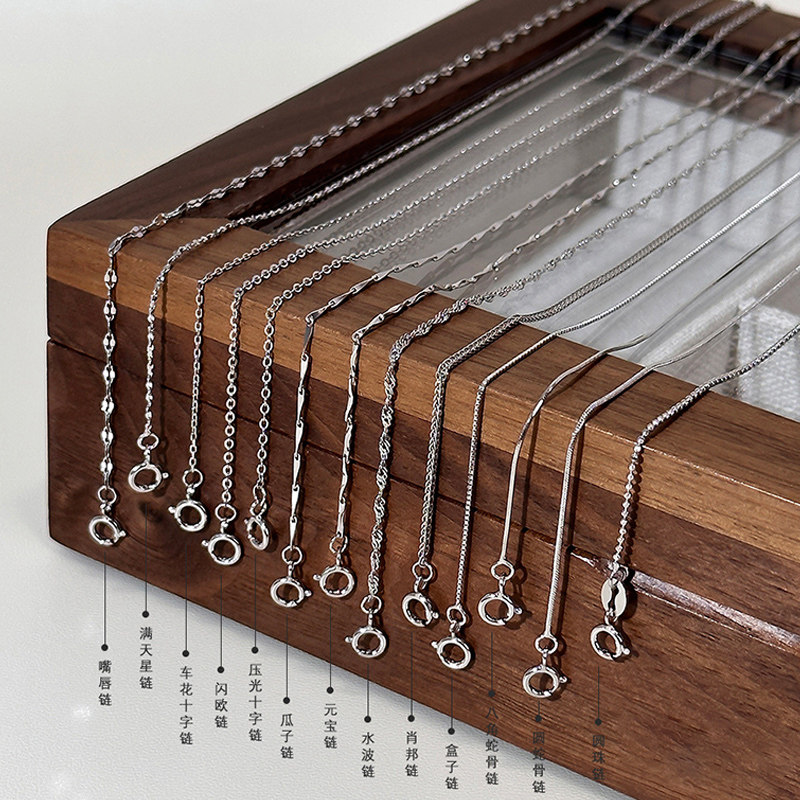 s925纯银项链女锁骨链穿吊坠配链盒子链瓜子链十字链裸链简约百搭