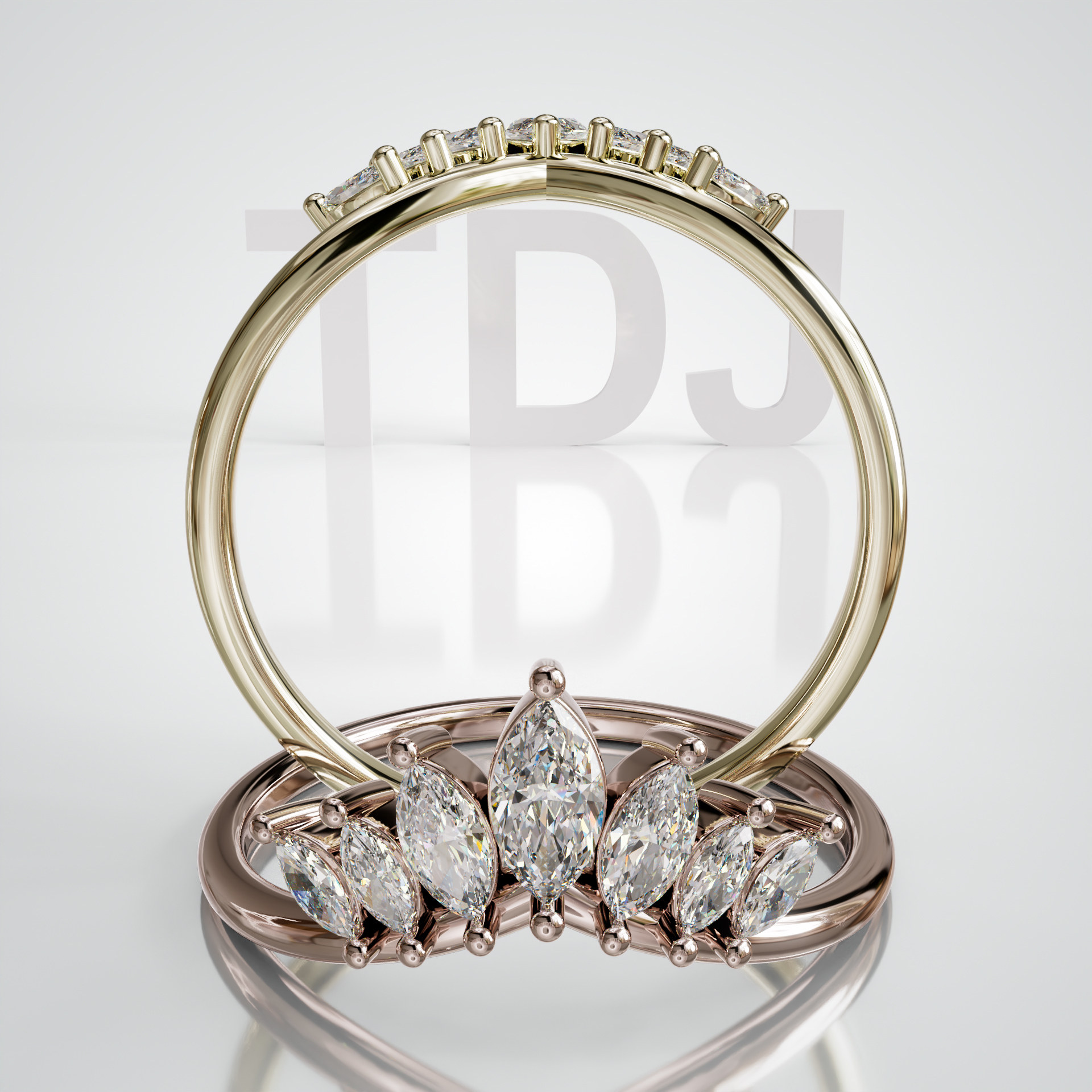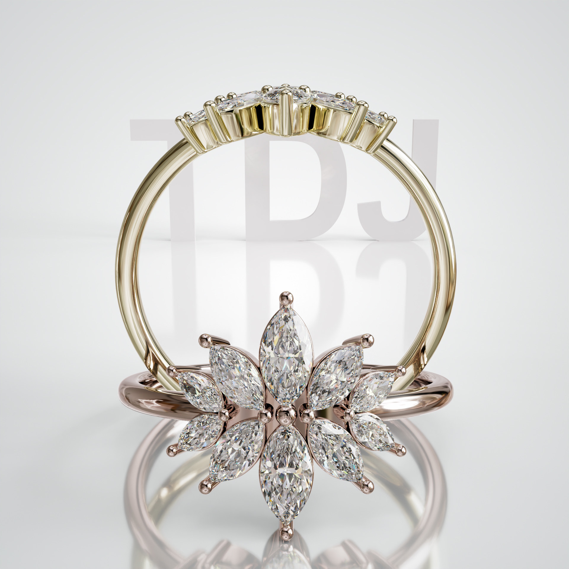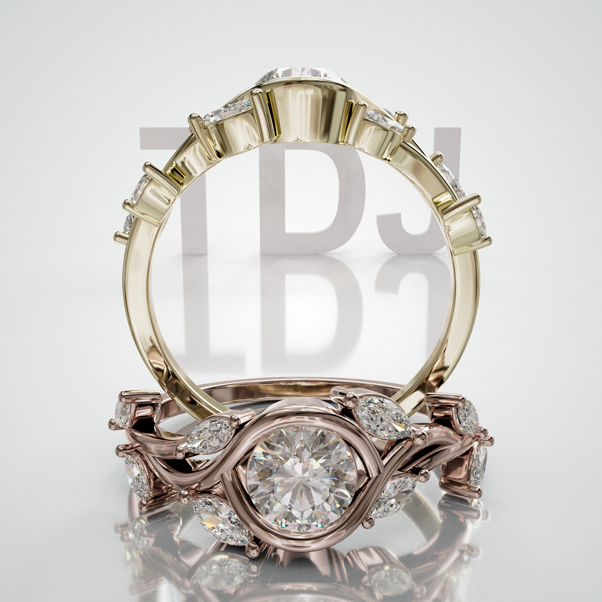 18K金水滴宝石交织戒臂叶状群镶戒指可定制轻奢灵动配戒女款纪念