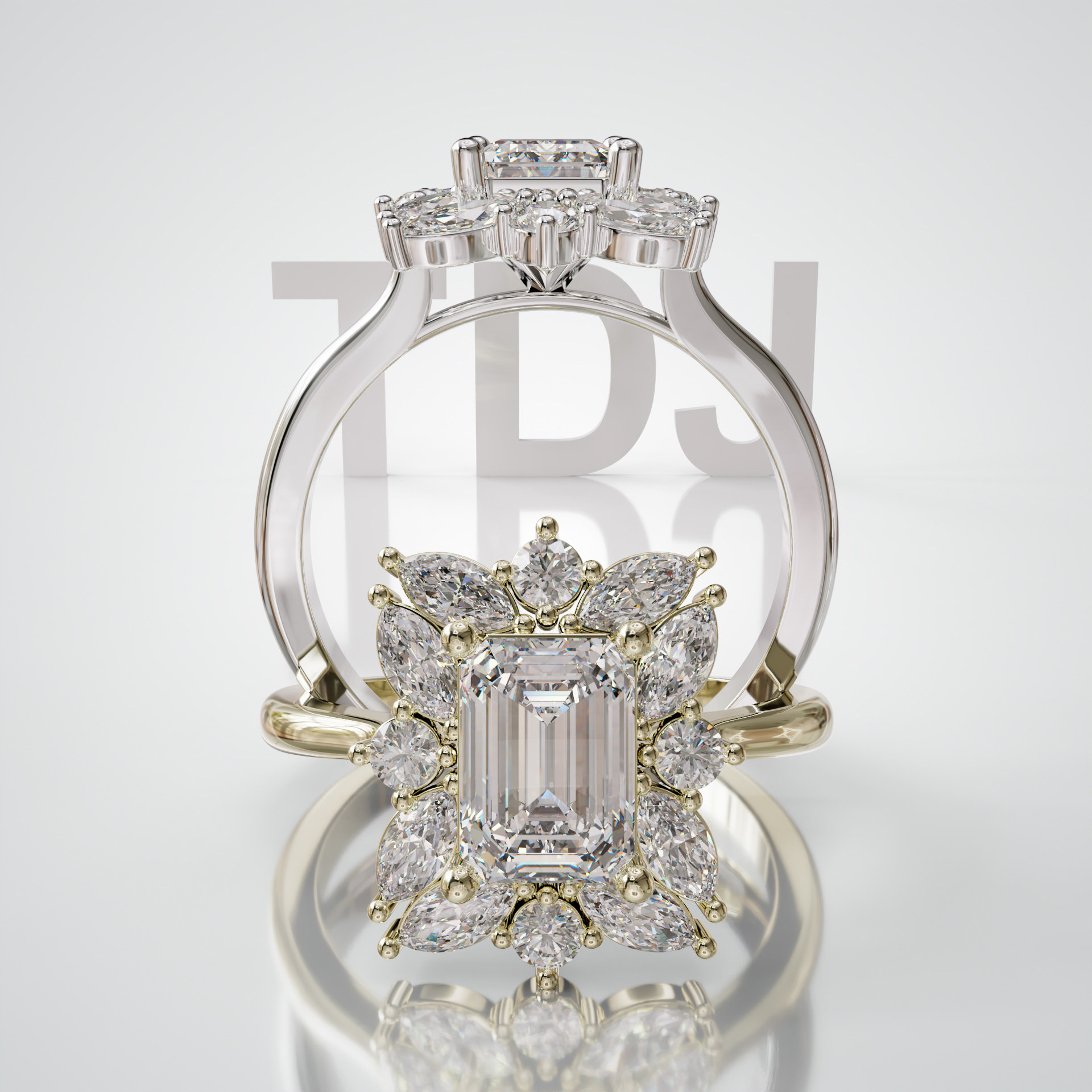 18K金祖母绿主石水滴星芒群镶戒指可定制轻奢华丽订婚戒女款婚戒
