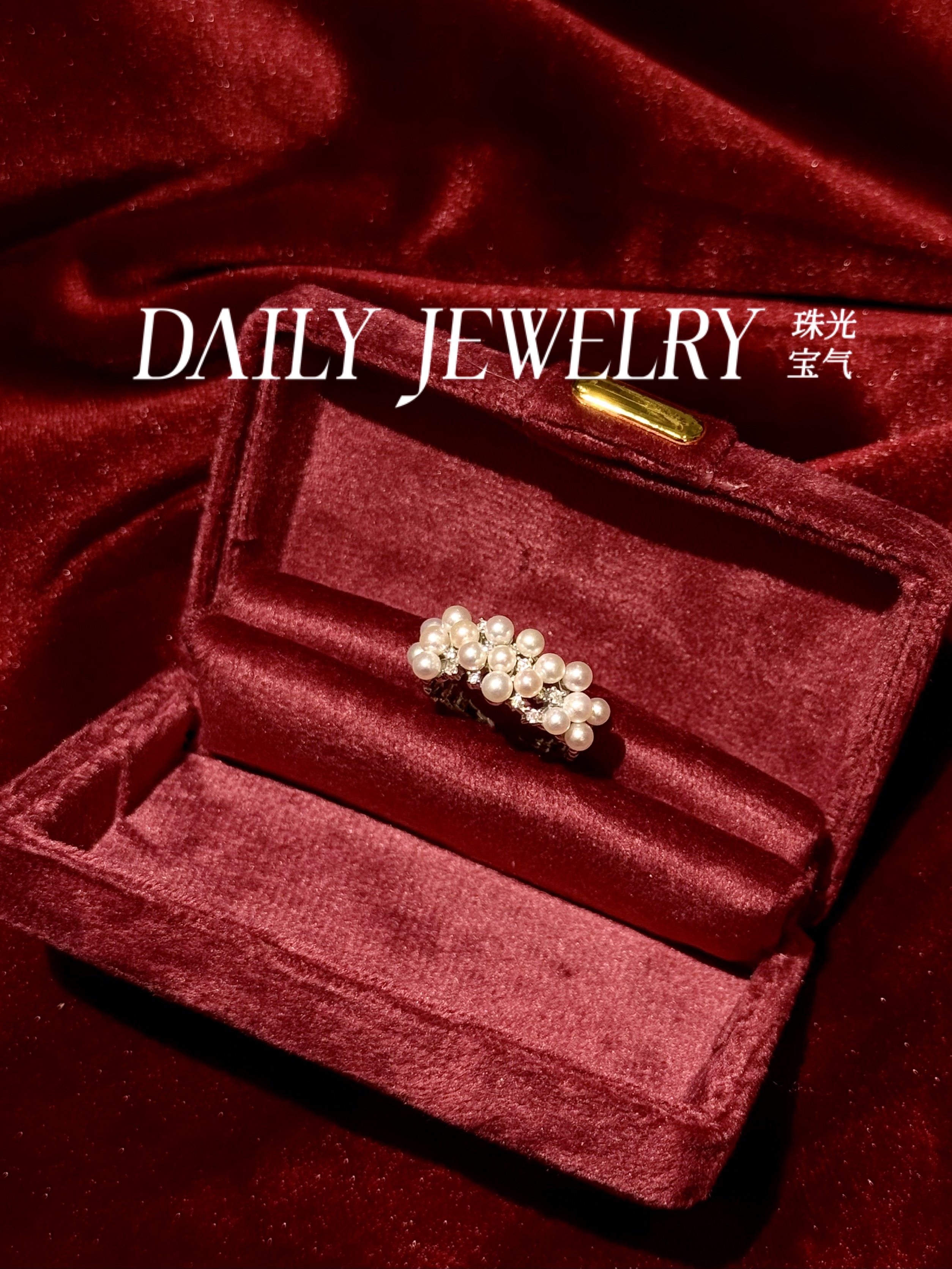 《与光同尘》精工纯银三排小珍珠群镶戒指轻奢复古高级感食指指环
