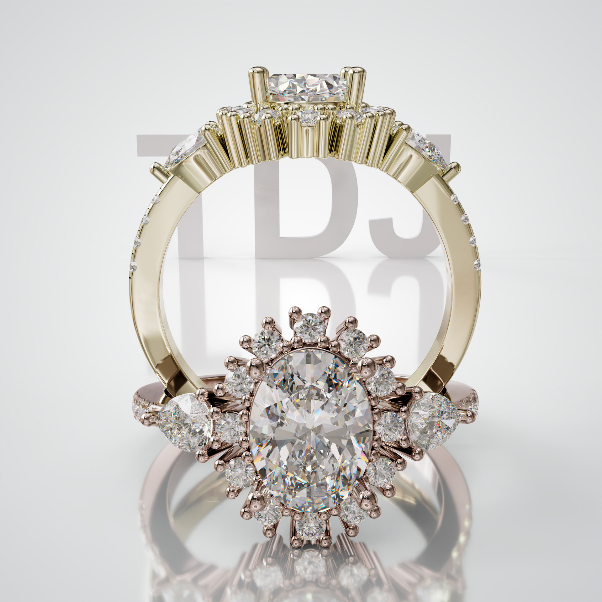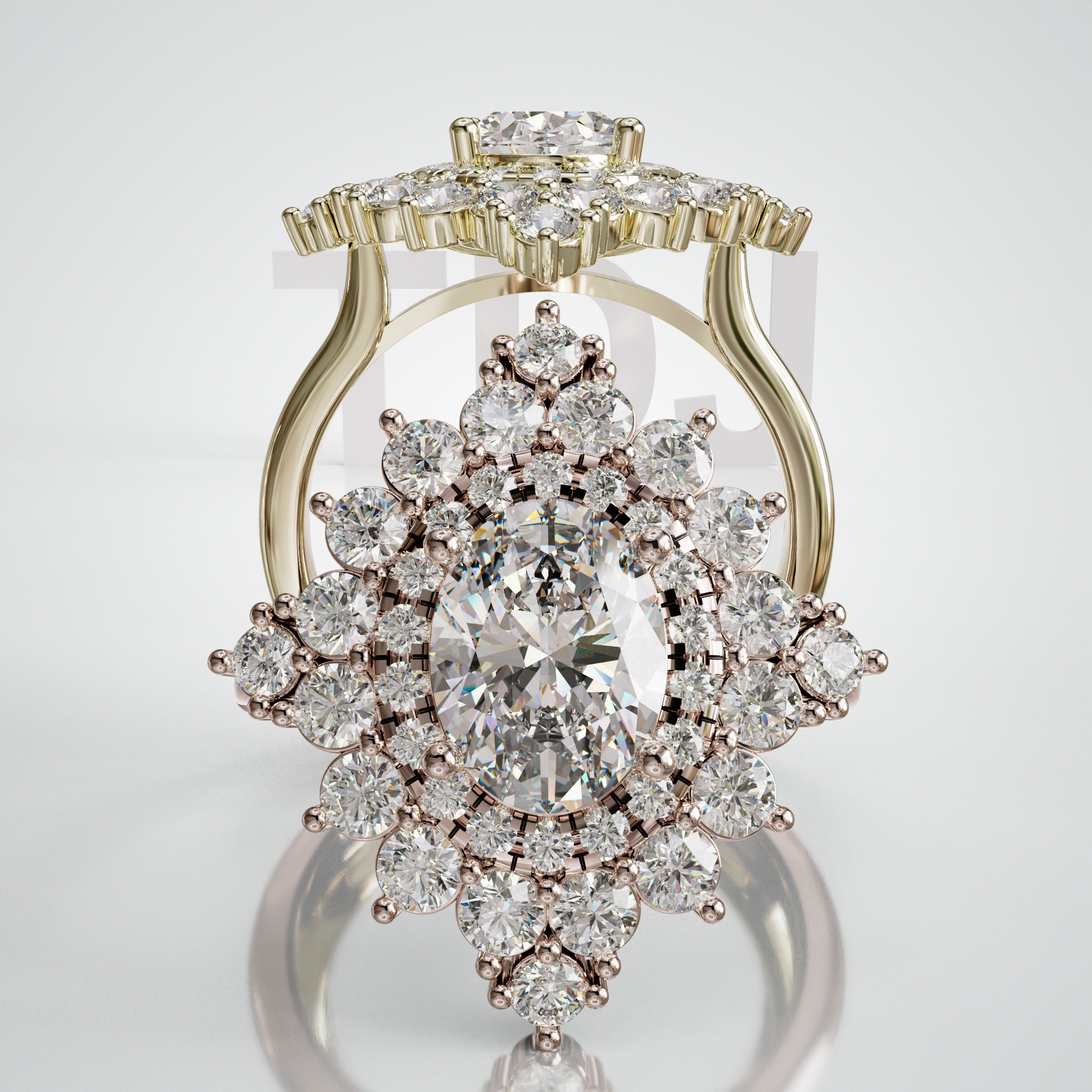 18K金椭圆主石多层繁花群镶戒指可定制轻奢奢华订婚戒女款婚戒