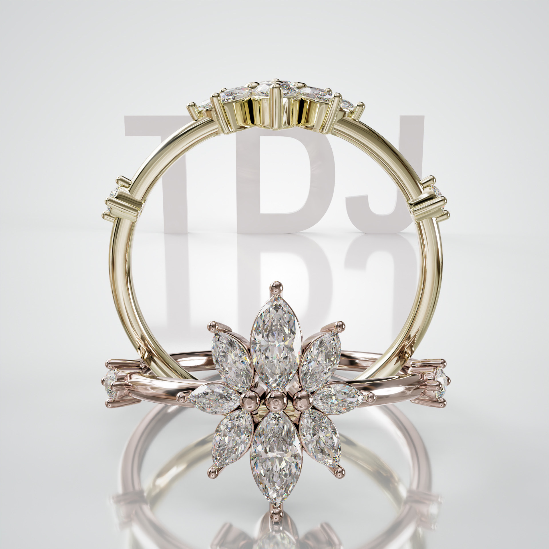 18K金水滴宝石花瓣群镶戒指可定制轻奢优雅配戒女款纪念日礼物饰