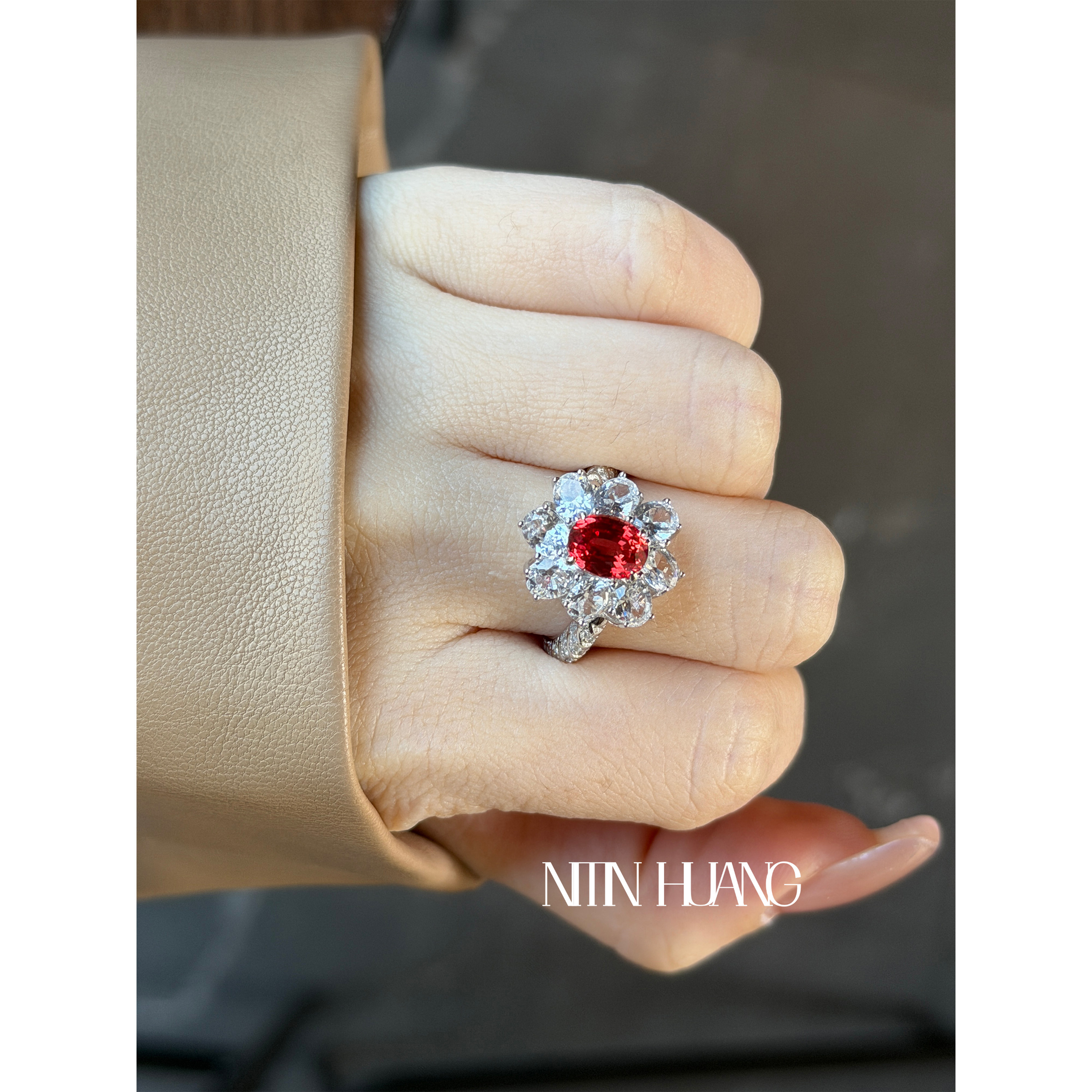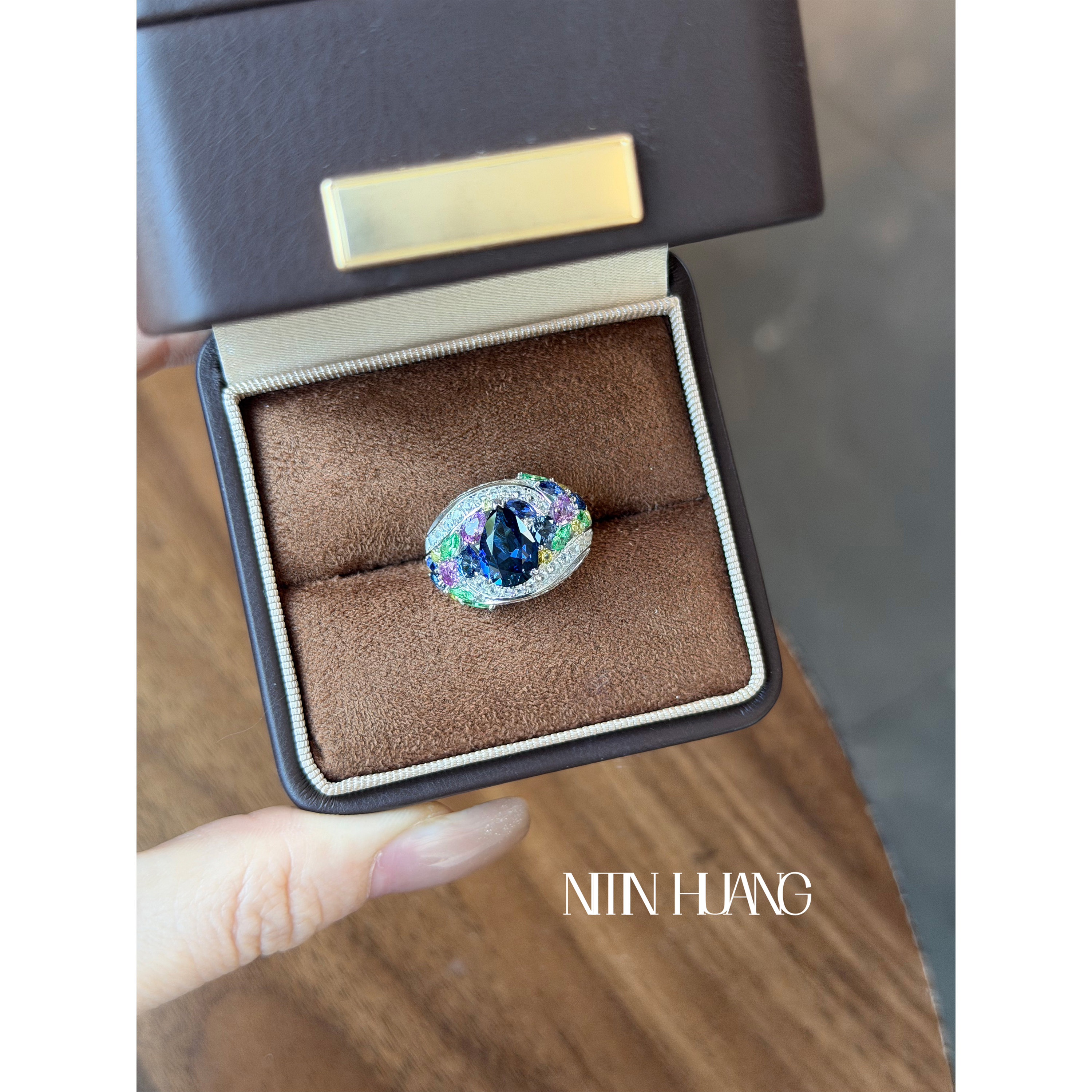 NITIN HUANG 花园系列 培育蓝宝石戒指彩色蓝宝石群镶戒指通体925