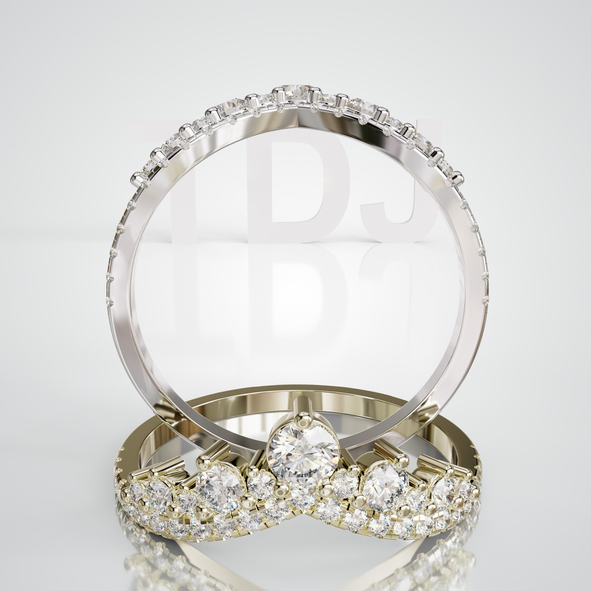 18K金圆钻主石V型群镶戒指可定制轻奢璀璨配戒女款纪念日礼物饰品