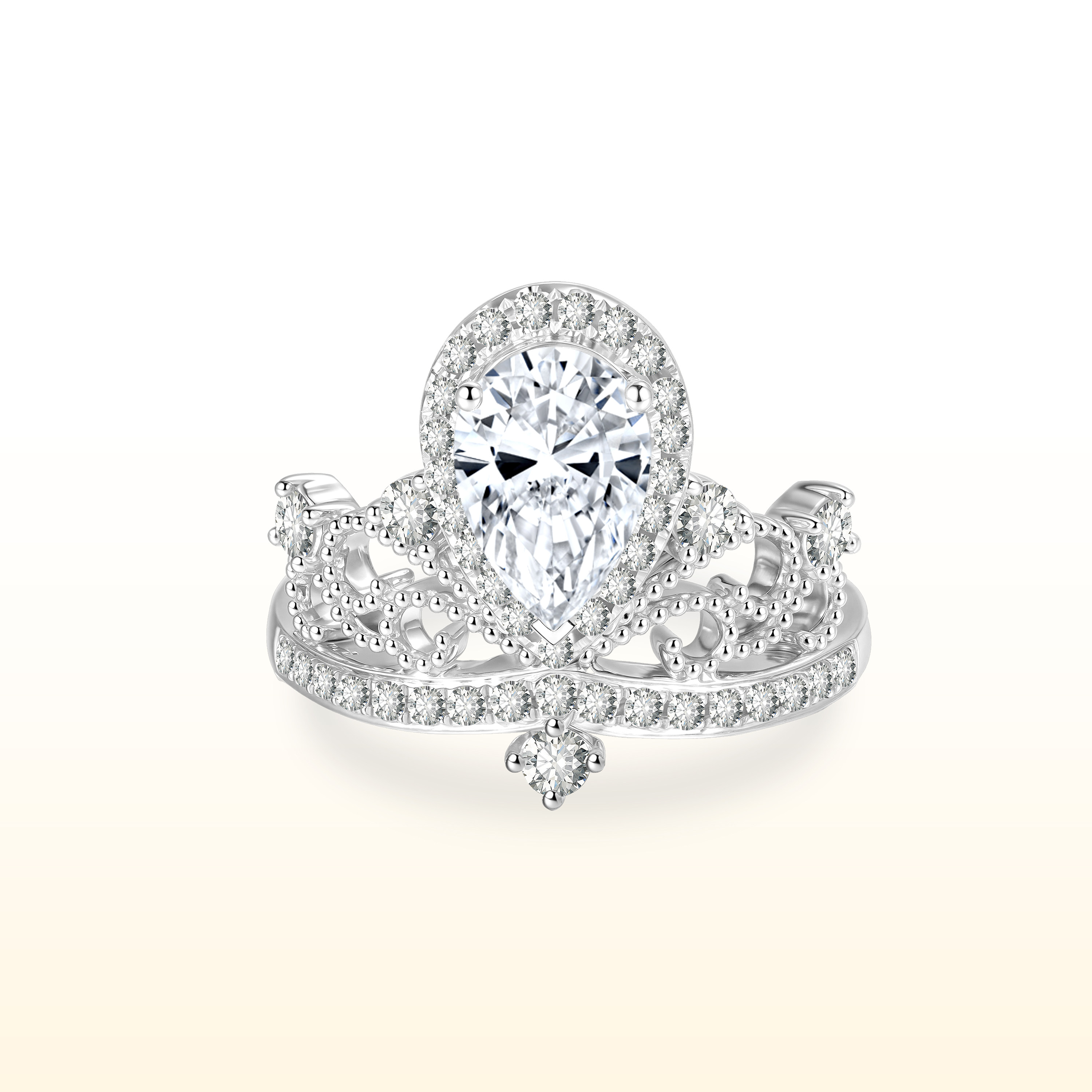 蒂芙星钻铂金PT950培育钻石水滴形皇冠群镶射奢华高级求婚戒指