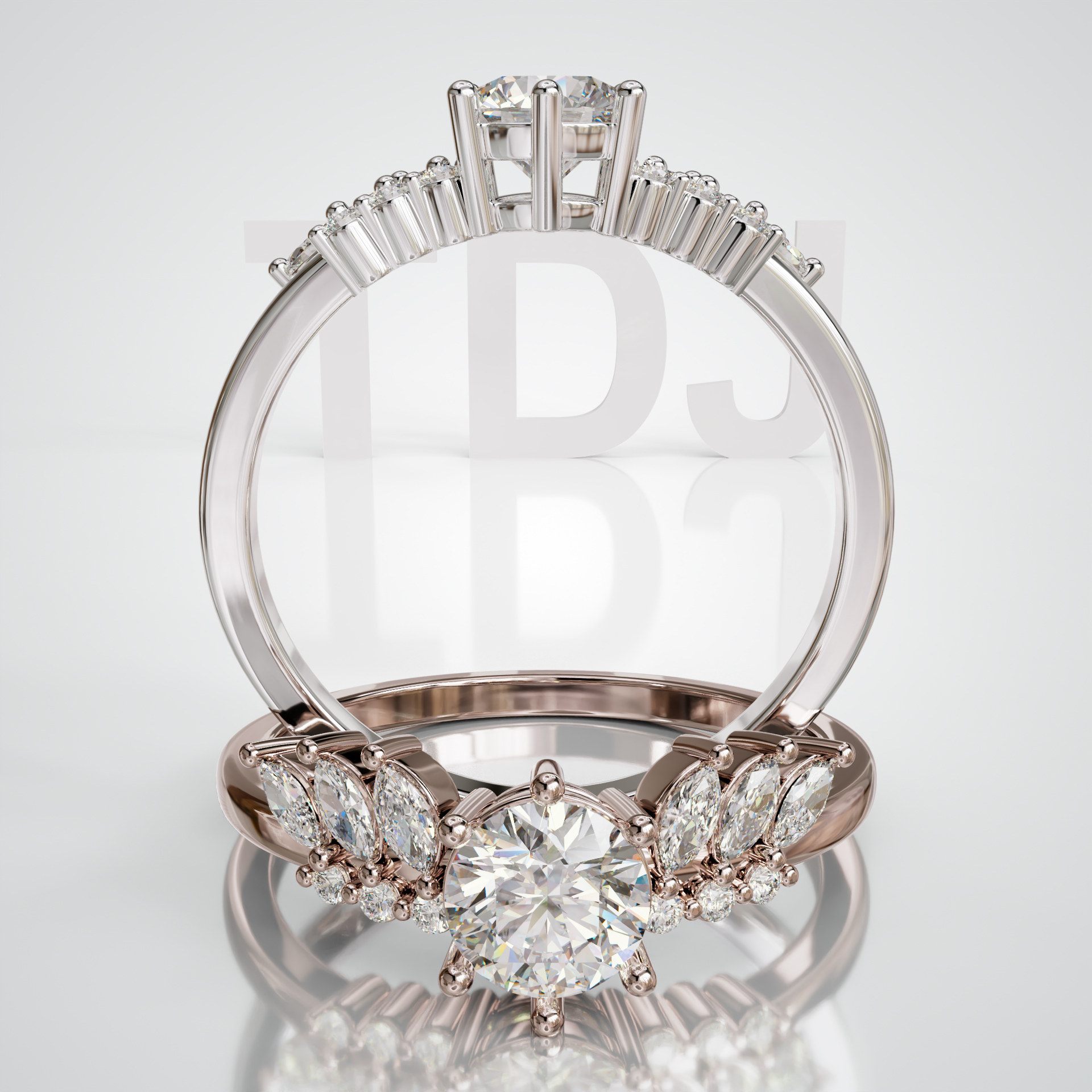 18K金圆钻主石交织戒臂水滴群镶戒指可定制轻奢灵动订婚戒女款婚
