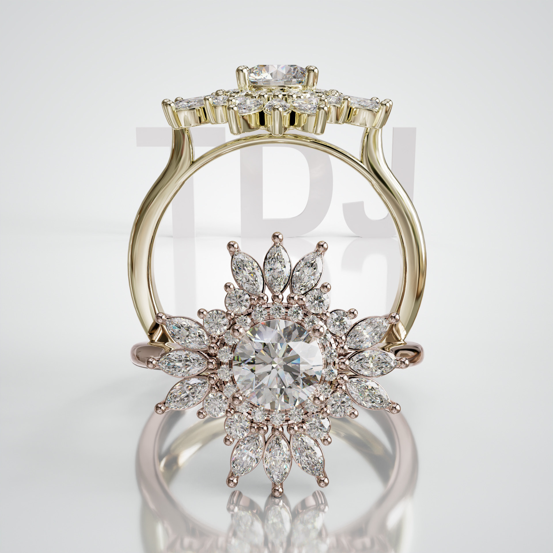18K金圆主石花瓣群镶戒指可定制轻奢浪漫订婚戒女款婚戒纪念日礼