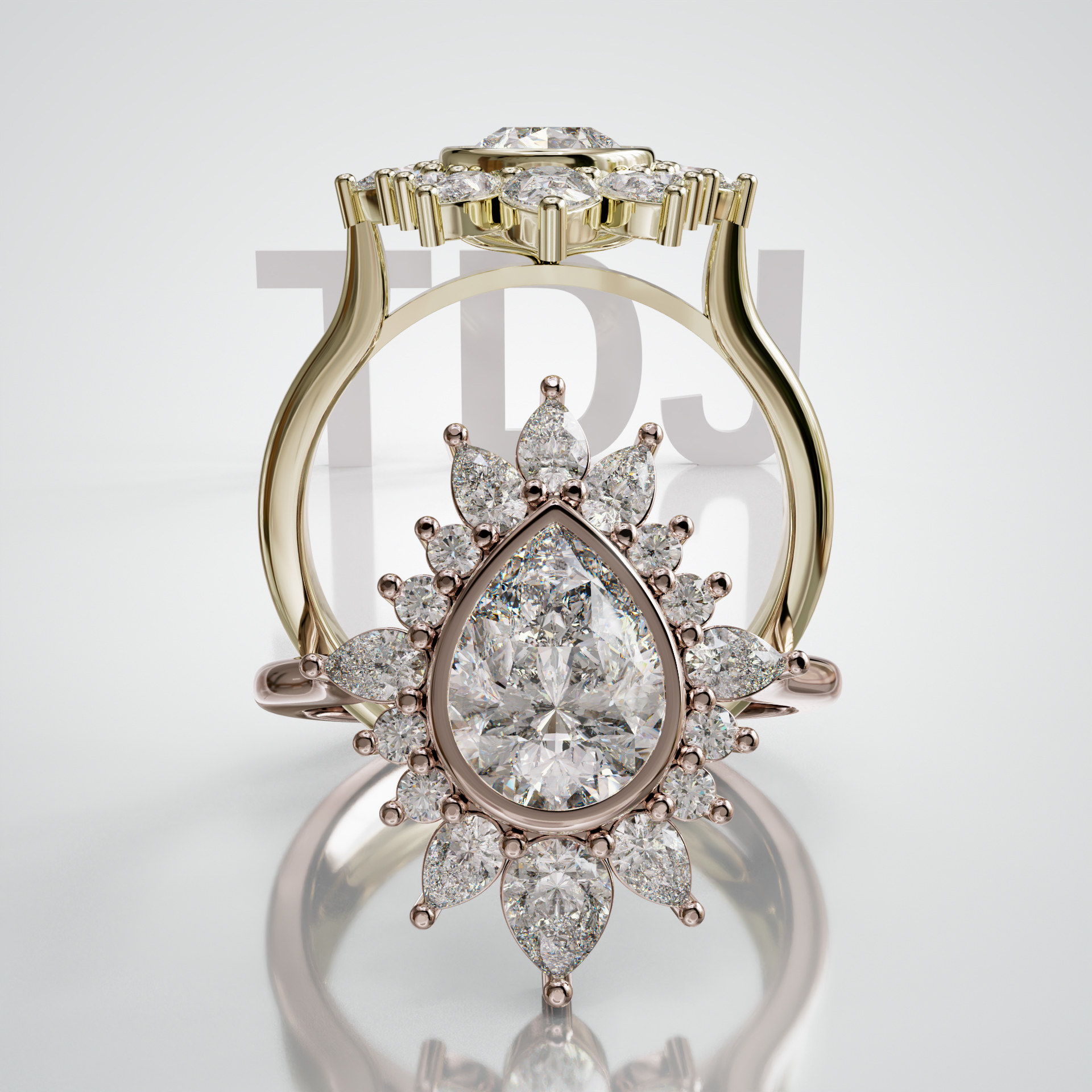 18K金圆主石水滴星芒群镶戒指可定制轻奢璀璨订婚戒女款婚戒纪念