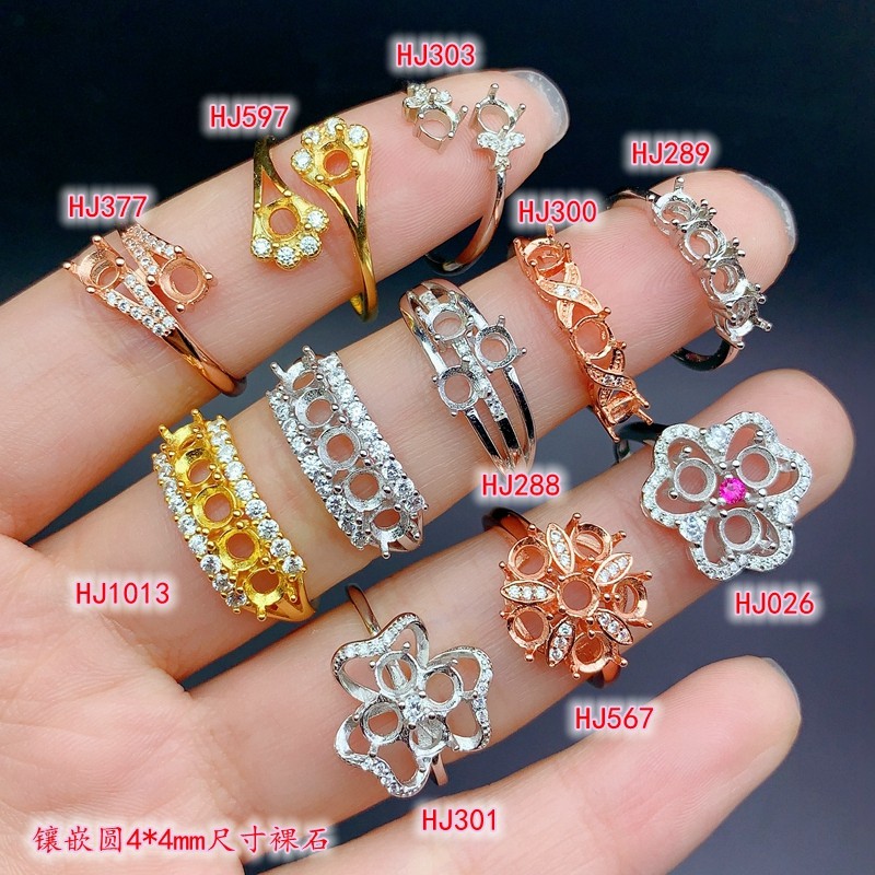 S925纯银群镶戒指空托 圆4*4mm 豪华气质精致日韩欧美款时尚饰品
