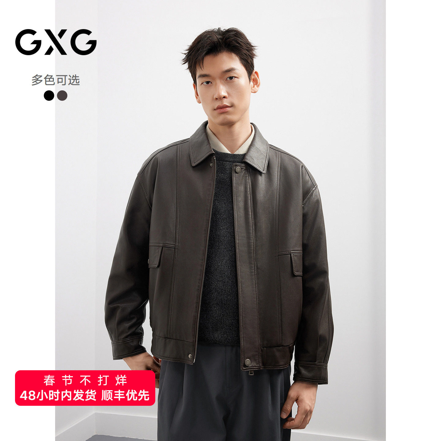 【羊皮】GXG男装复古夹克宽松真皮皮衣外套25年秋新款#G25D123002