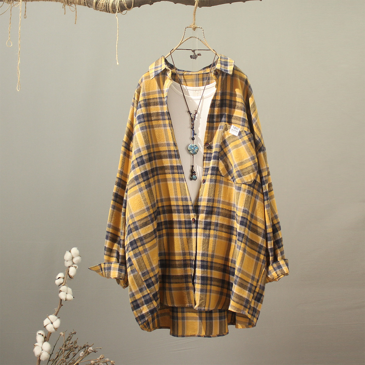 - 日系格子衬衫女
